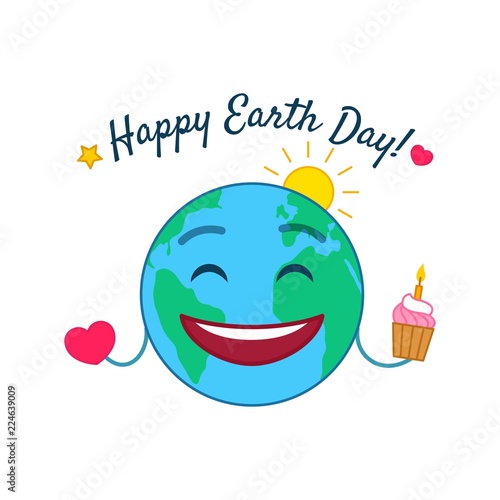 Happy Earth Day Greeting Card With Funny Emoticon Earth Planet In