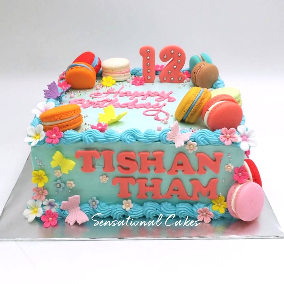 The Sensational Cakes Colorful Macarons Square Cream Theme With